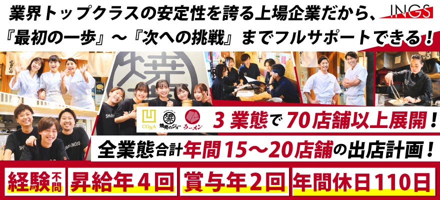 実力派の飲食店オーナーを輩出する、上場レストラン企業です!
